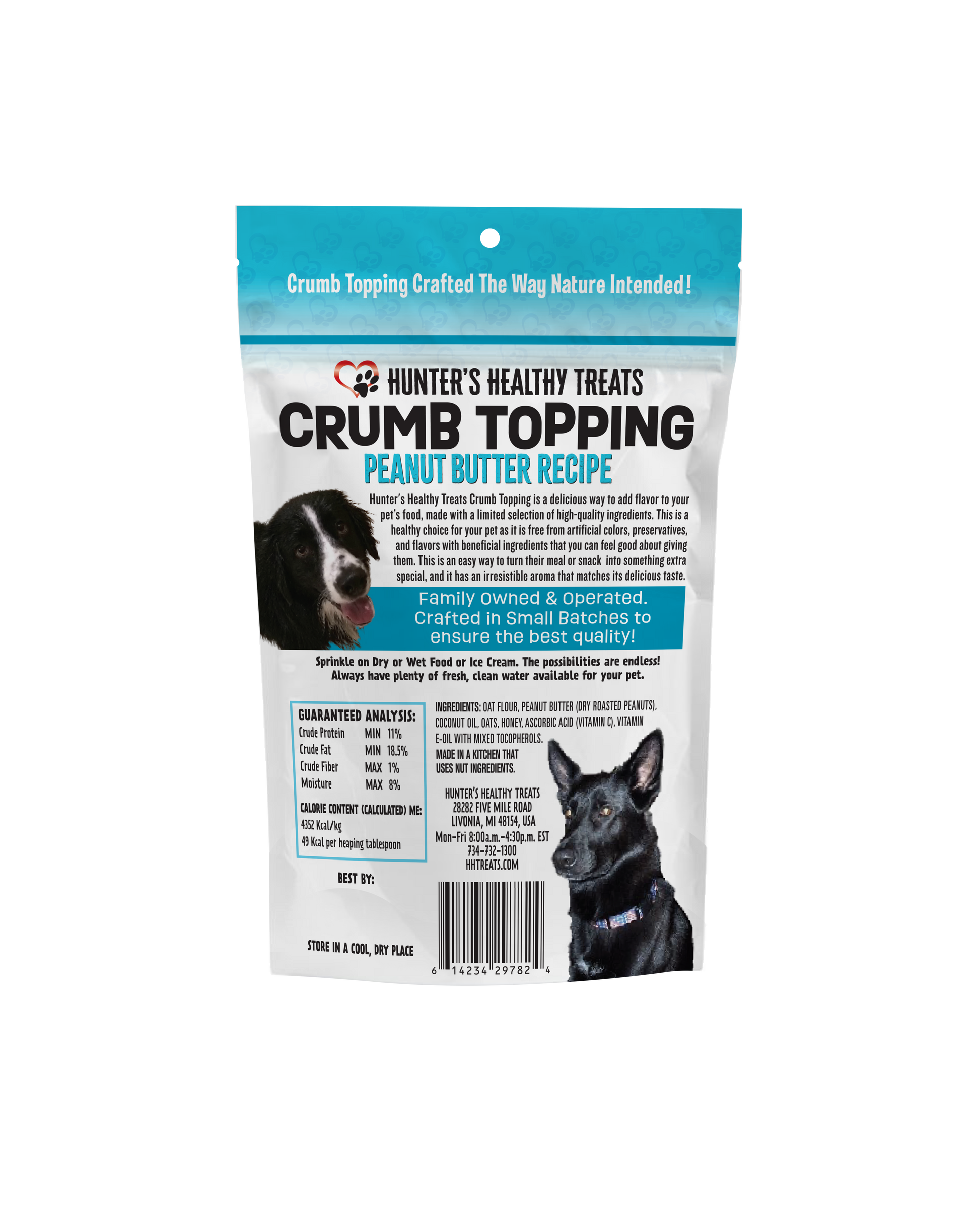 The ingredients used are beneficial for your pet with a flavor they will love. They are all natural with no artificial preservatives, hydrogenated oils, salt, or sugar so you can feel good about adding these crumbs to your pet’s diet.