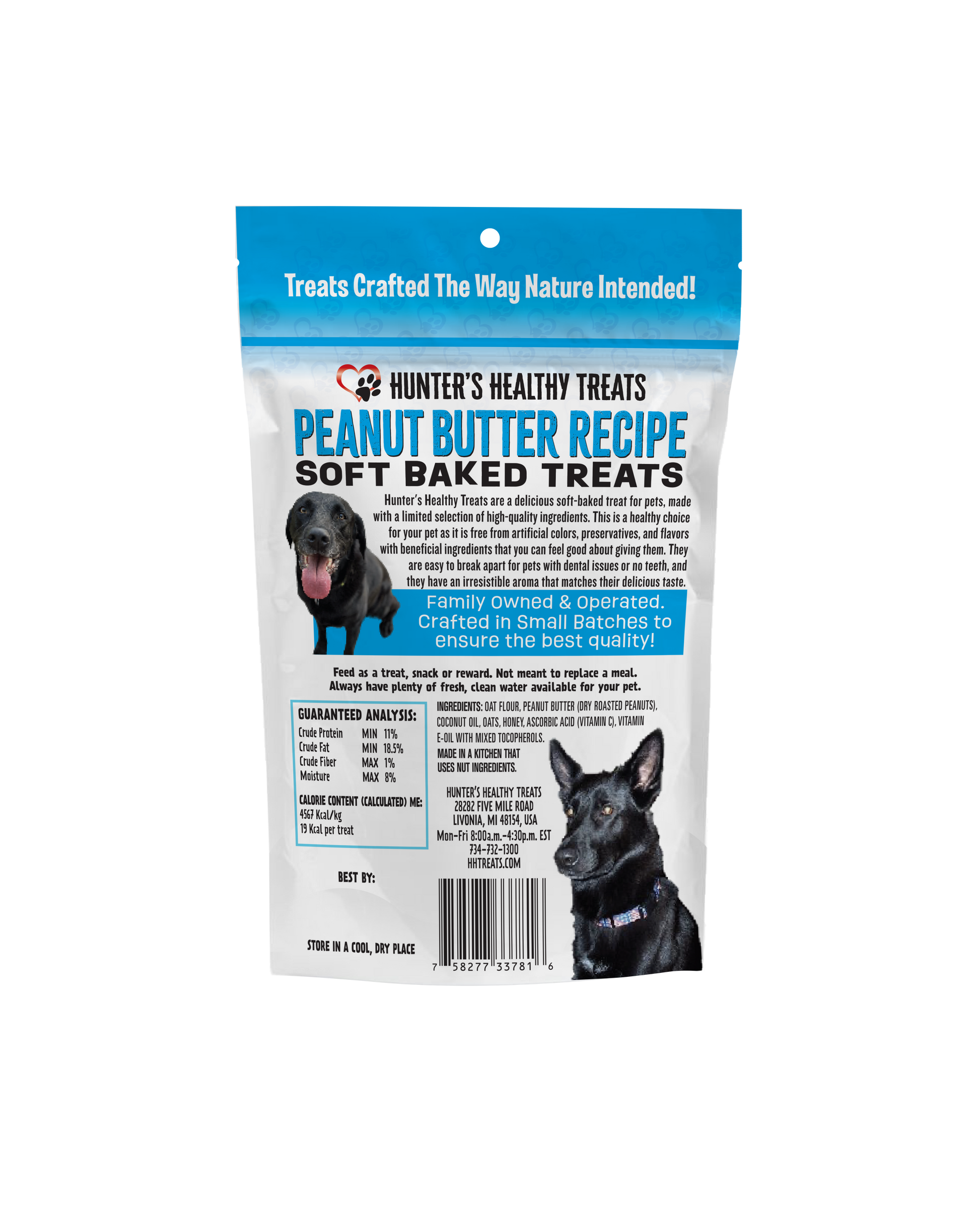 These peanut butter treats taste just like a peanut butter cookie that you or I would eat! As a matter of fact, we taste each batch to ensure the quality of the product. Feed as a treat, snack or reward as they are not intended to replace a meal. Always make sure your dogs have fresh, clean water available throughout the day. The ingredients used are beneficial for your pet with a flavor they will love. They are all natural with no artificial preservatives, hydrogenated oils, salt or sugar so you can feel good about giving this treat to your dog everyday. They do not contain corn, wheat, or soy so most animals with allergies are able to eat them. Because these treats are soft baked, small dogs, dogs with dental issues or no teeth at all and dogs with Mega Esophagus have been able to enjoy these treats.